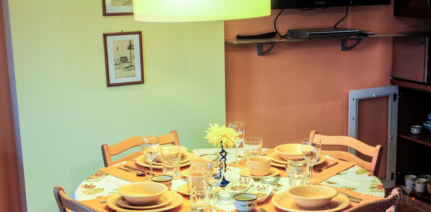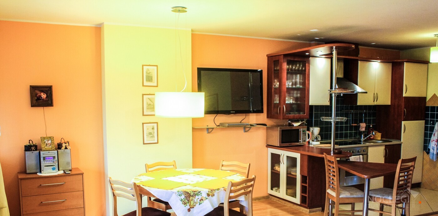 Apartament znajduje się w bardzo miłej i spokojnej dzielnicy miasta. Obiekt posiada dwie sypialnie, łazienkę z prysznicem i wc, salon, kuchnię i jadalnię. Do dyspozycji gości 70 metrów kw. Mieszkanie jest dwupiętrowe. Na zewnątrz budynku zamykany parking z monitoringiem. Usytuowanie obiektu:- 500 m do najsłynniejszej zakopiańskiej ulicy -Krupówki- 2000 m do dworca PKP i PKS- 200 m do